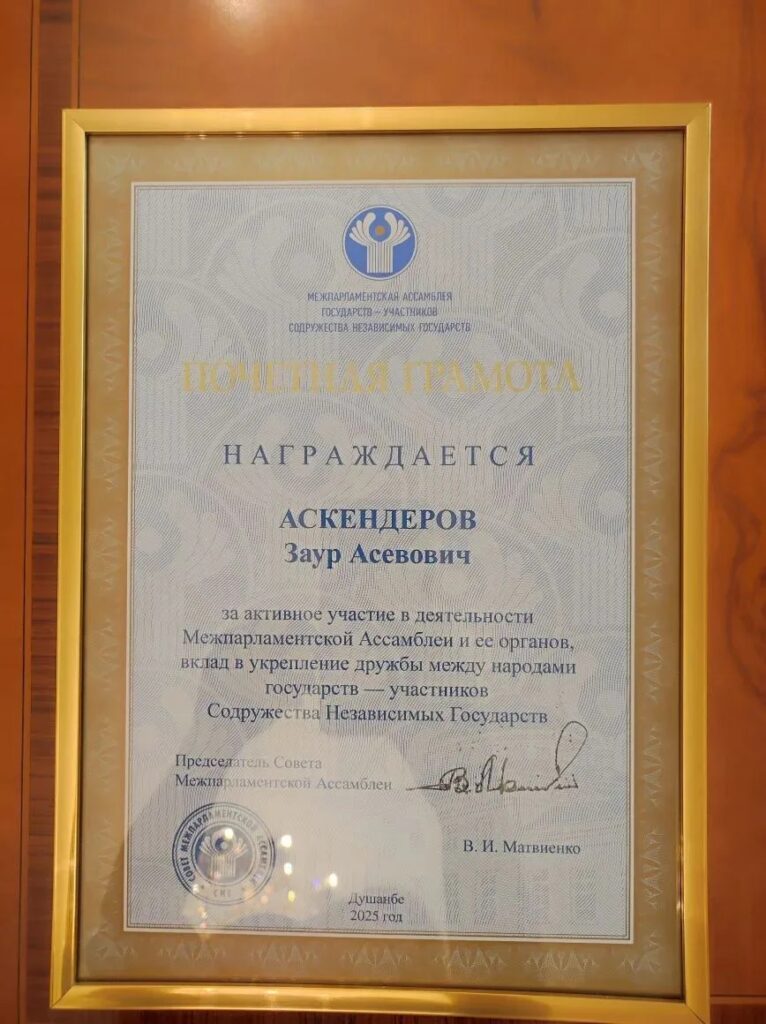 Заур Аскендеров награжден Почетной грамотой Межпарламентской Ассамблеи государств — участников СНГ